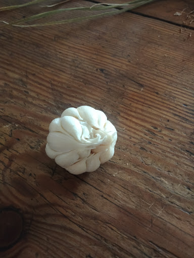 Obviously I took the photo of the biggest garlic in my husband's hands, but about 5% look like that!!! There is about 80% medium ones and the small ones I will put in jars as "crushed Garlic". In total there was only 10 garlics that was "bad". Although there is a lot medium ones, they are healthy! I gave my first garlic to my brother and he complimented me on their good taste.